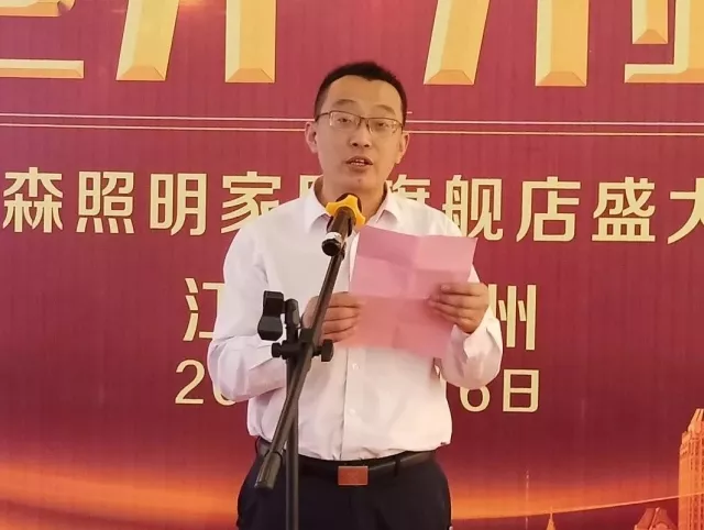 鄒區(qū)發(fā)得燈具廣場副總經理孫建平代表市場方致賀辭時談到,在品牌化的大趨勢下,木林森照明江蘇運營中心審時度勢,與發(fā)得廣場強強聯合,高揚加快發(fā)展的主旋律。孫總寄語木林森照明旗艦店百尺桿頭、更進一步,在江蘇市場獨占鰲頭,實現經濟效益和社會效益雙豐收。