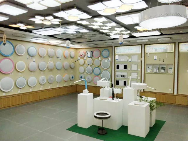 木林森照明常州家居旗艦店展廳裝修風格和環(huán)境裝飾采用簡約時尚風格,在店面形象細節(jié)作了升級改造,更加符合現代年輕人的審美觀念。深灰色地磚代替以往的木紋地板,更加大氣簡潔,明顯突出燈具的美感。吸頂燈墻面按照產品尺寸設計排列,更顯整齊美觀,也提高了墻面利用率。常州旗艦店嶄新明亮的店面形象,使人眼前一亮,搭配經典美觀的產品和舒適愉悅的店面氛圍,令人賞心悅目。