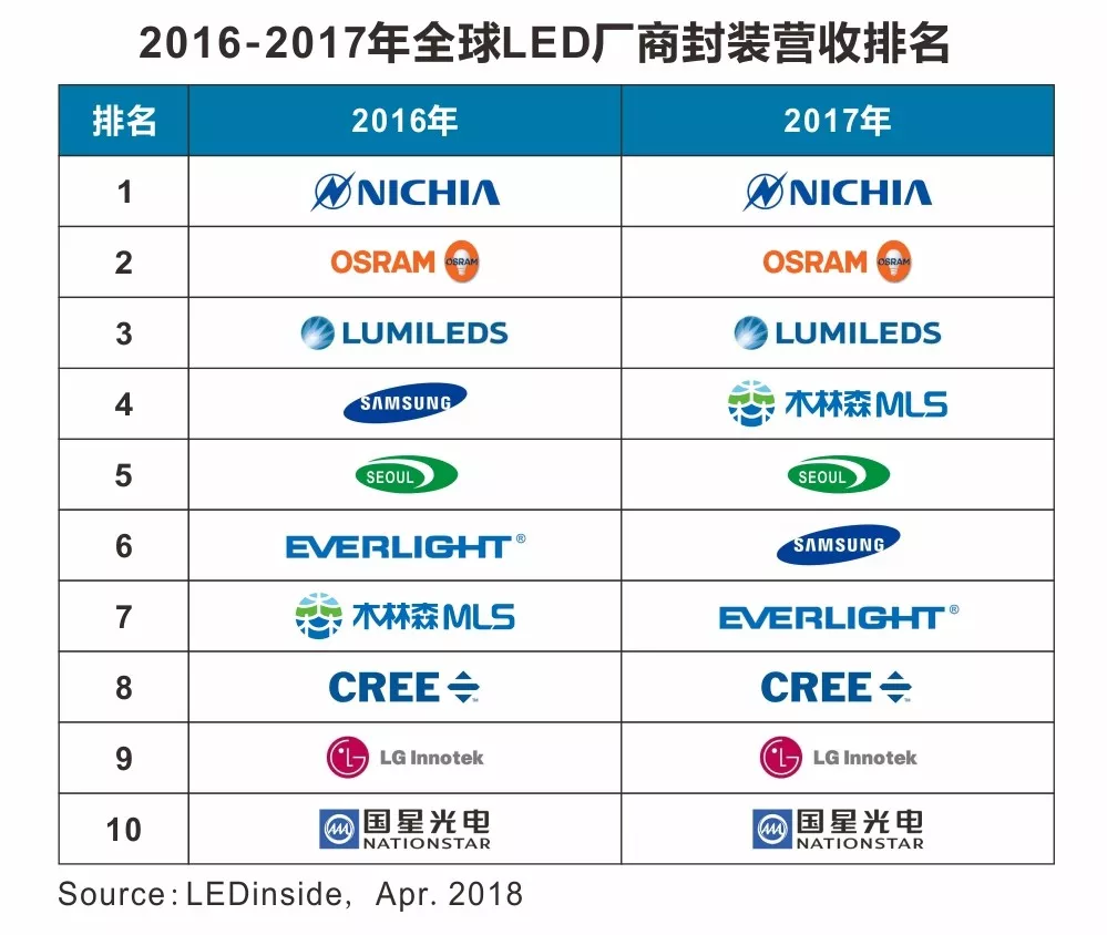 2017中國LED照明燈飾行業(yè)100強| 木林森第2名