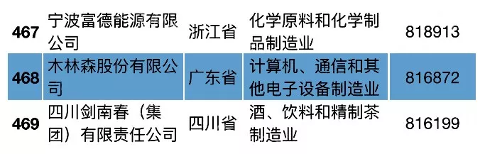2018年中國民營企業(yè)制造業(yè)500強 | 木林森第468名