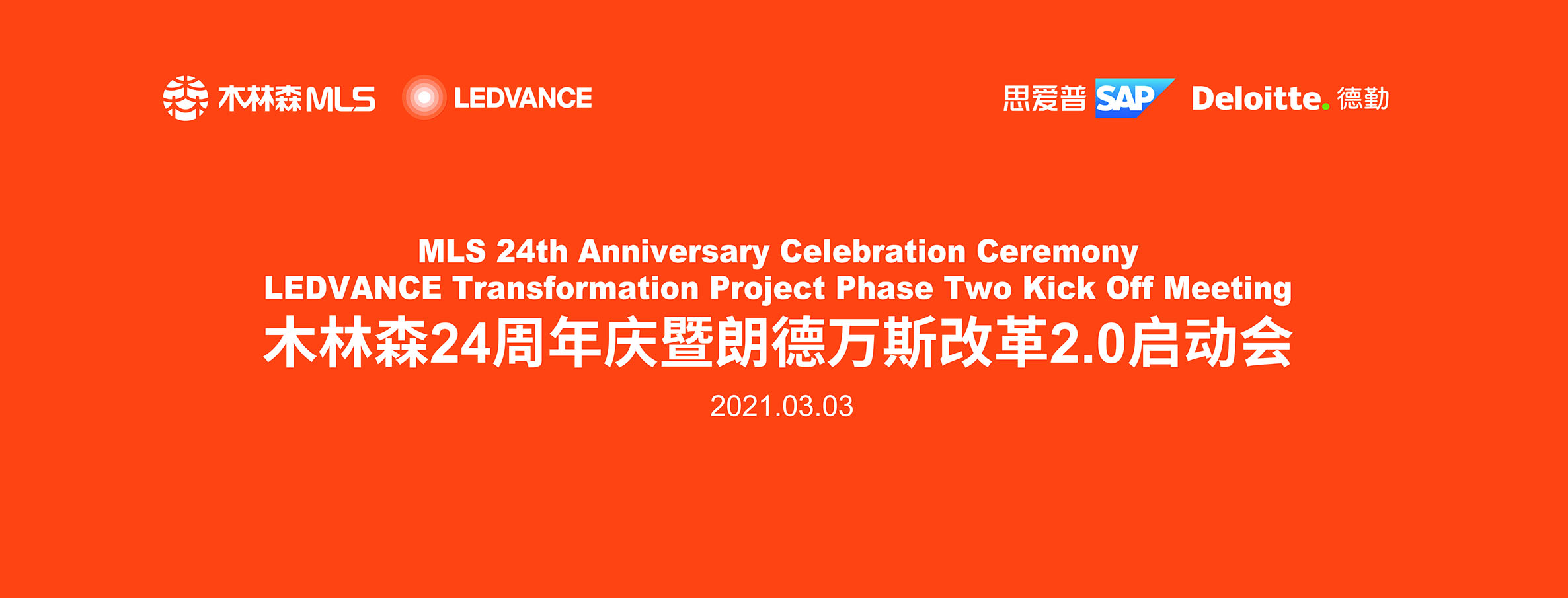 2021年3月3日,值木林森24周年慶之際,木林森在中山總部舉辦了【木林森24周年慶暨朗德萬斯改革2.0啟動會】,與朗德萬斯亞太、歐洲、北美及拉丁美洲分公司一同啟動項目。木林森股份有限公司董事長/朗德萬斯CEO孫清煥、木林森股份有限公司集團管理委員會成員及各事業(yè)部總經(jīng)理、SAP中國區(qū)高級副總裁/總經(jīng)理王前、SAP中國副總裁劉鑫、SAP中國區(qū)高科技行業(yè)華南總監(jiān)胡亮、德勤咨詢SAP業(yè)務(wù)線領(lǐng)導(dǎo)合伙人周令坤、德勤咨詢SAP管理咨詢合伙人曾苑威、黃曉宇出席了本次會議,朗德萬斯全球各地區(qū)的負責人在線參加了本次啟動儀式。