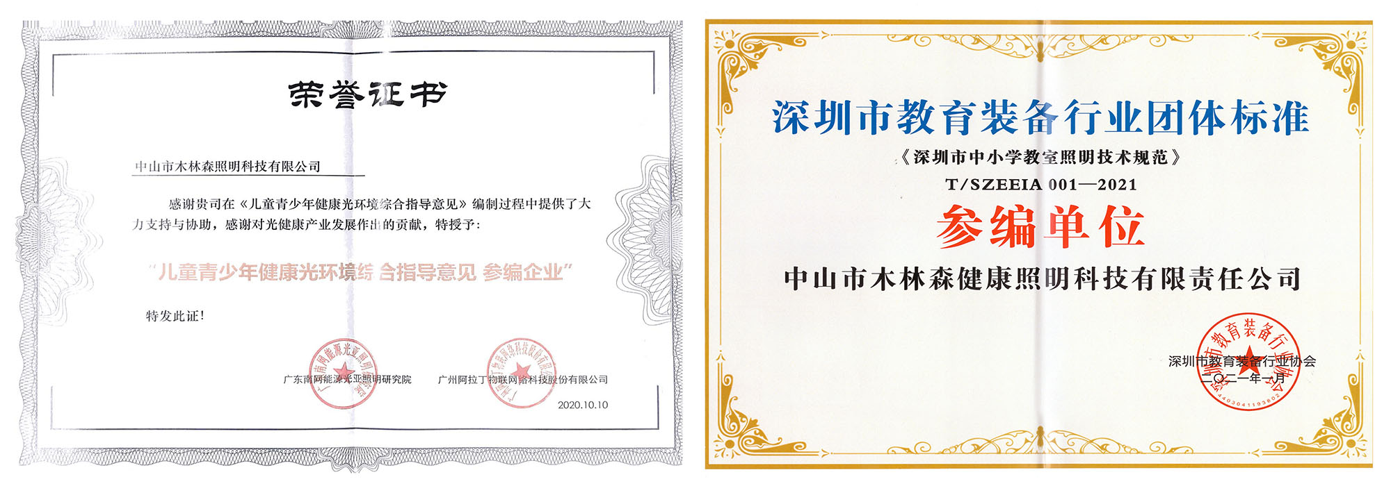 同時(shí),為促進(jìn)企業(yè)發(fā)展,木林森健康照明科技有限責(zé)任公司今年也加入了深圳教育裝備行業(yè)協(xié)會(huì),廣東教育裝備協(xié)會(huì),中國教育裝備協(xié)會(huì)等協(xié)會(huì),并榮獲《深圳市教育裝備行業(yè)團(tuán)體標(biāo)準(zhǔn)》及《兒童青少年健康光環(huán)境綜合指導(dǎo)意見》參編企業(yè)。